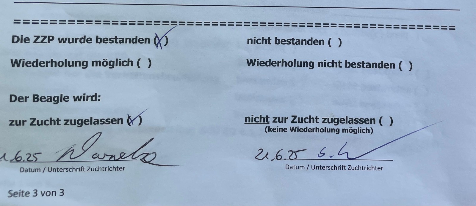 Am 21.06.25 fand in Berlin/Waßmannsdorf eine Zuchtzulassungsprüfung des BCD e.V. mit den Spezialzuchtrichtern Sandra Rechtacek und Thomas Warneke statt. Mit prima Ergebnissen bestand unsere "Naila vom Colditzer Heimatturm" (Nele) die Geräuschempindlichkeitsprüfung, Verhaltensbeurteilung, Zahnkontrolle, Wideristhöhenmessung und Formwertbeurteilung.