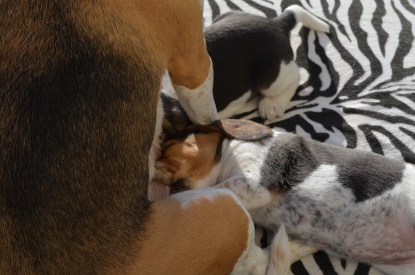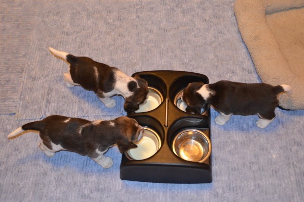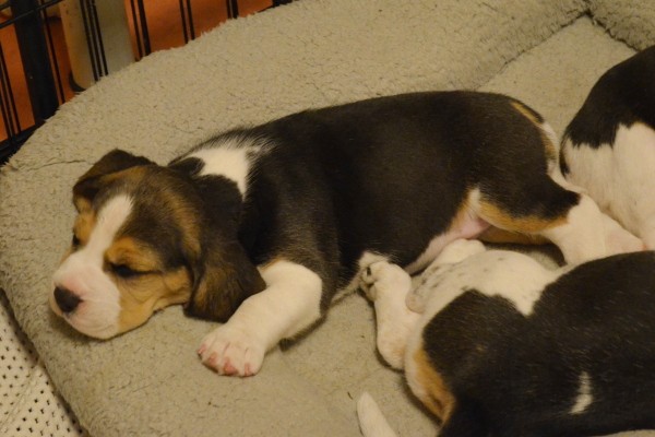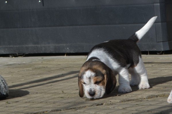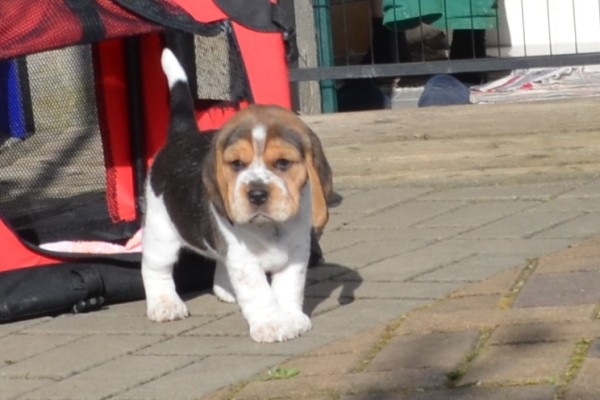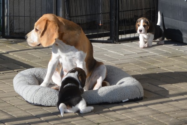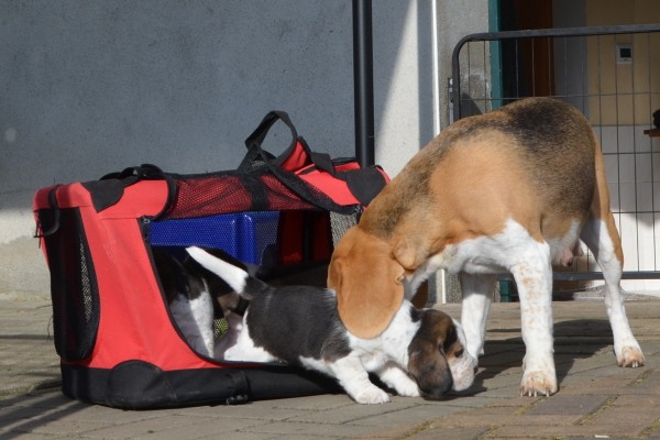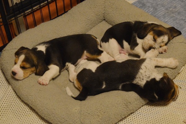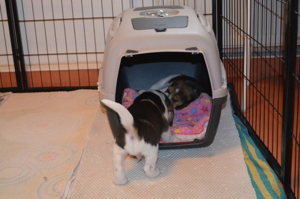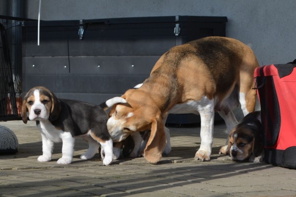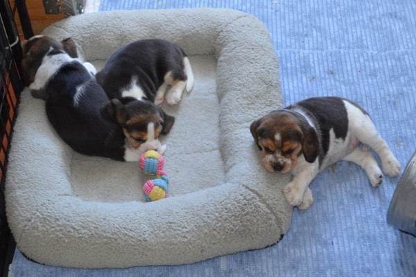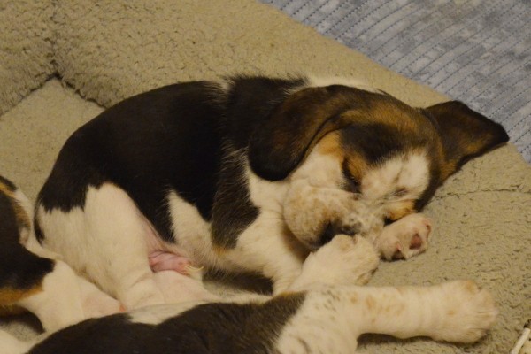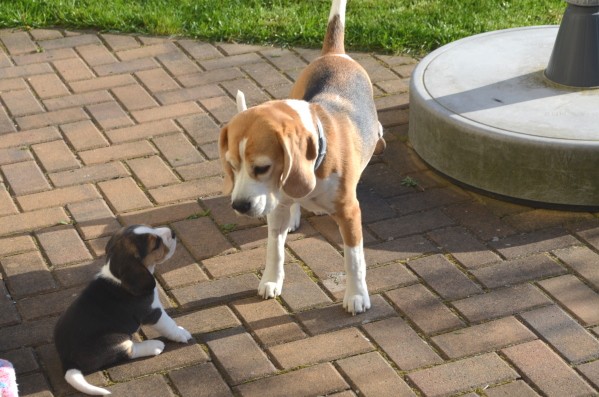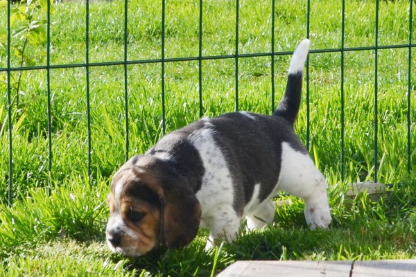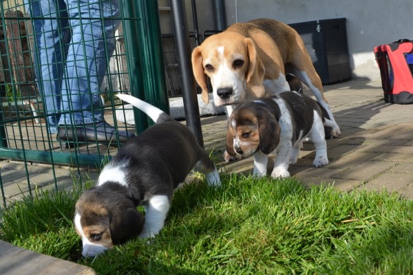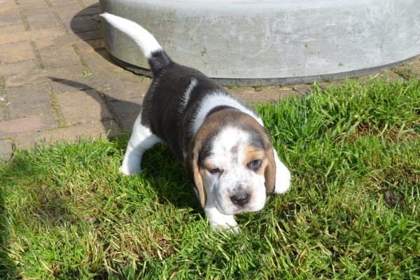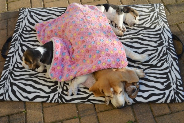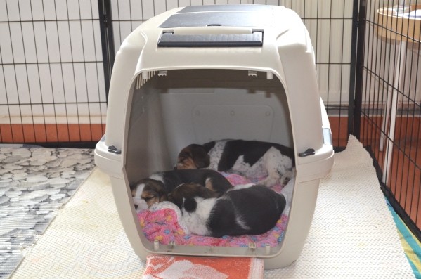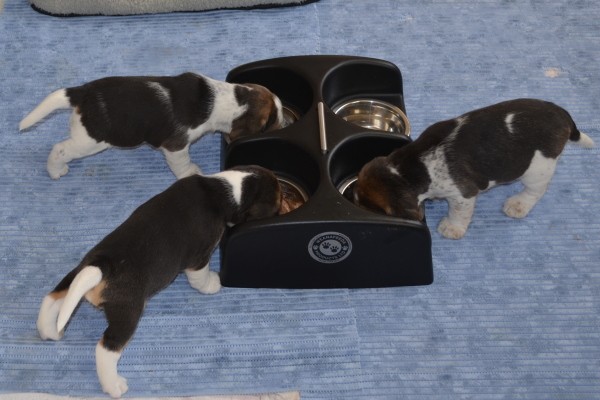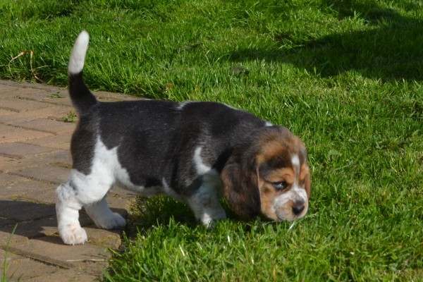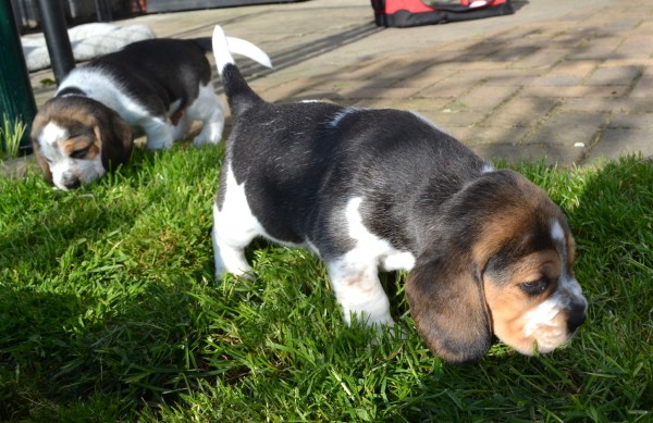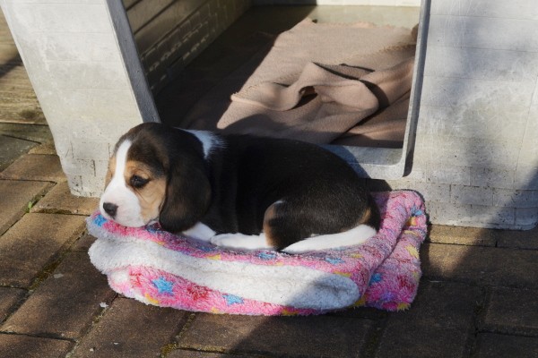 Am Freitagnachmittag haben wir ein großes Abenteuer erlebt. Gemeinsam mit unserer Mama, die ganz sehr auf uns aufgepasst hat, waren wir bei schönem warmen Wetter zum ersten Mal im Garten. Da gab es eine Menge zu entdecken. Queenie Emma hat die Hundehütte entdeckt. Die ist prima und später haben wir ein Nickerchen darin gemacht. Quentin Bruno hat sich zuerst in den großen blauen Tunnel getraut. Und wir haben natürlich vom Gras gekostet, zuerst Queen Buffy und dann auch die beiden anderen. Das musste sein! Das war herrlich im Garten. Nach dem Schlafen waren unsere Batterien wieder aufgeladen und wir gingen weiter auf Entdeckungstour. Später gab es Milch bei Mama Kaley und dann haben wir mit ihr zusammen ein weiteres Schläfchen gemacht.