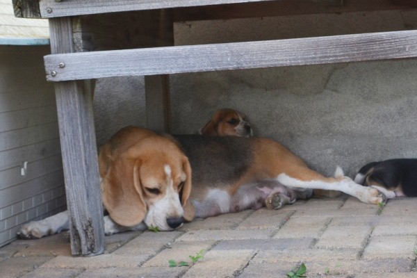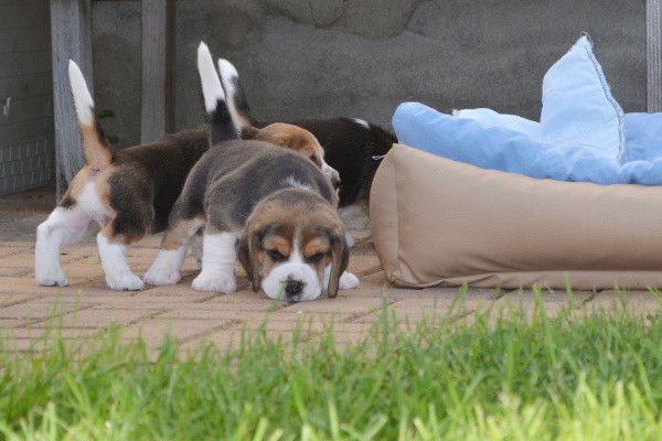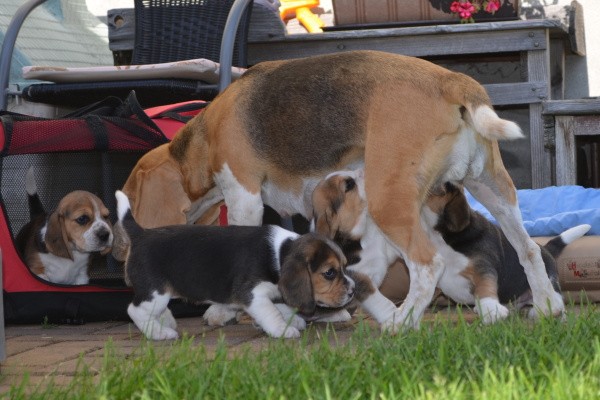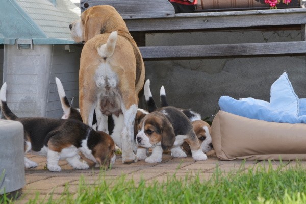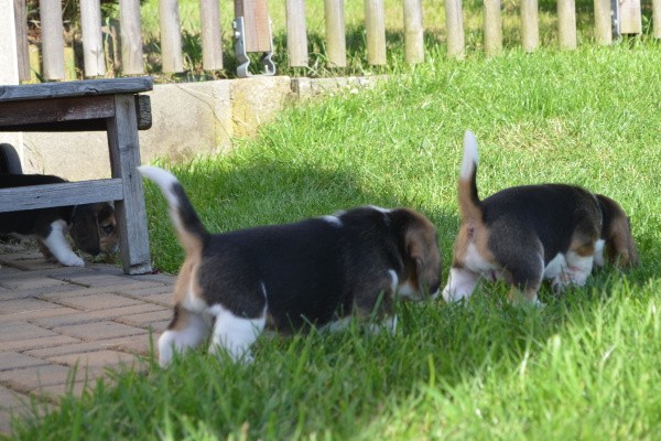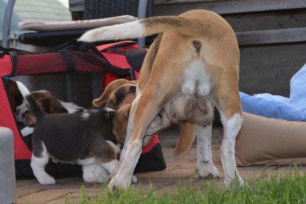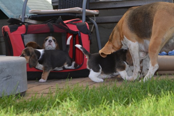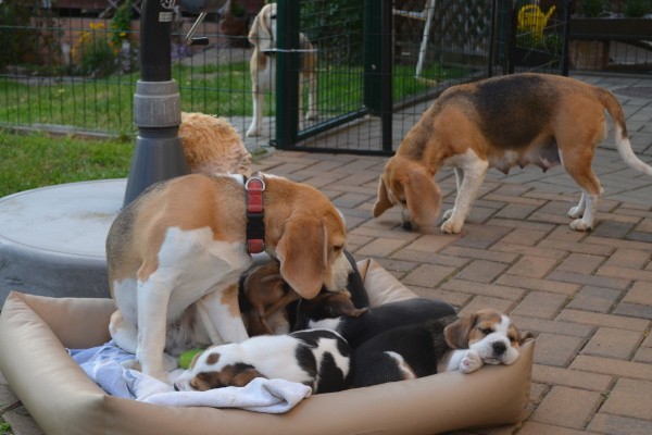 Diese Woche haben wir den Garten kennengelernt. Unsere Mama Kaley war selbstverständlich dabei und hat gut auf uns aufgepasst. Es gab viel zu entdecken und wir habe probiert, wie das Gras schmeckt. Zwischendurch hatte Mama ihre Milchbar für uns geöffnet. Als wir müde wurden, haben wir ein Schläfchen im Garten gemacht. Nele hat uns Gesellschaft geleistet und sich sehr gut als Babysitterin gemacht.